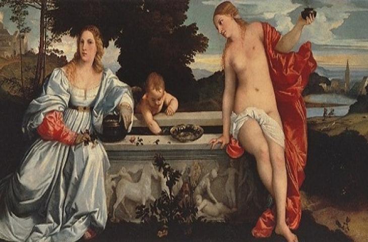 DA GIOTTO AL RINASCIMENTO - Nell’arte occidentale tra il IX e il X sec. l’acqua tende a venire identificata con l’atto battesimale e a diventare così simbolo di purezza. Estremamente suggestivo è l’affresco di Giotto nella Cappella degli Scrovegni a Padova in cui viene raffigurato il battesimo di Gesù. Anche nel “Battesimo di Cristo" di Piero della Francesca la composizione di figure umane è costruita attorno al Cristo nell’atto di ricevere il sacramento. I colori sono tersi e creano piccoli contrasti luminosi tra le vesti, la trasparenza del cielo e lo scintillio dell’acqua benedetta. Sandro Botticelli, con il suo dipinto “Nascita di Venere" conservato agli Uffizi di Firenze, riporta l’acqua protagonista di soggetti profani; in questa tela, diventata icona del Rinascimento italiano, in cui si vede Venere che avanza leggera su una conchiglia lungo la superficie del mare increspata dalle onde: la prospettiva viene data proprio dall’acqua che assume diverse tonalità in lontananza e che rappresenta l’origine della vita. E ancora nel dipinto di Tiziano “Amor sacro e Amor profano”, i due personaggi femminili, Venere e Proserpina, assistono l’amorino che miscela l’acqua contenuta nello scrigno-sarcofago trasformando la morte in vita. Esemplare, infine, l’interpretazione del mito di Narciso nel quadro di Caravaggio che riproduce il fanciullo chino su uno specchio d’acqua intento a rimirare incantato la propria immagine.